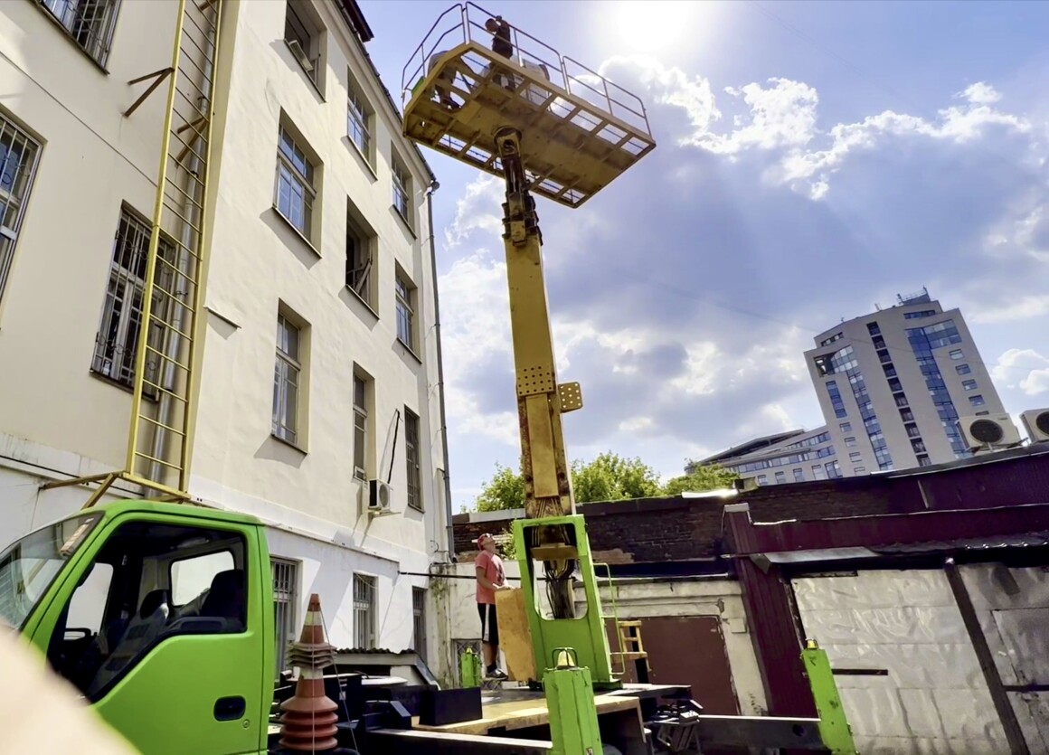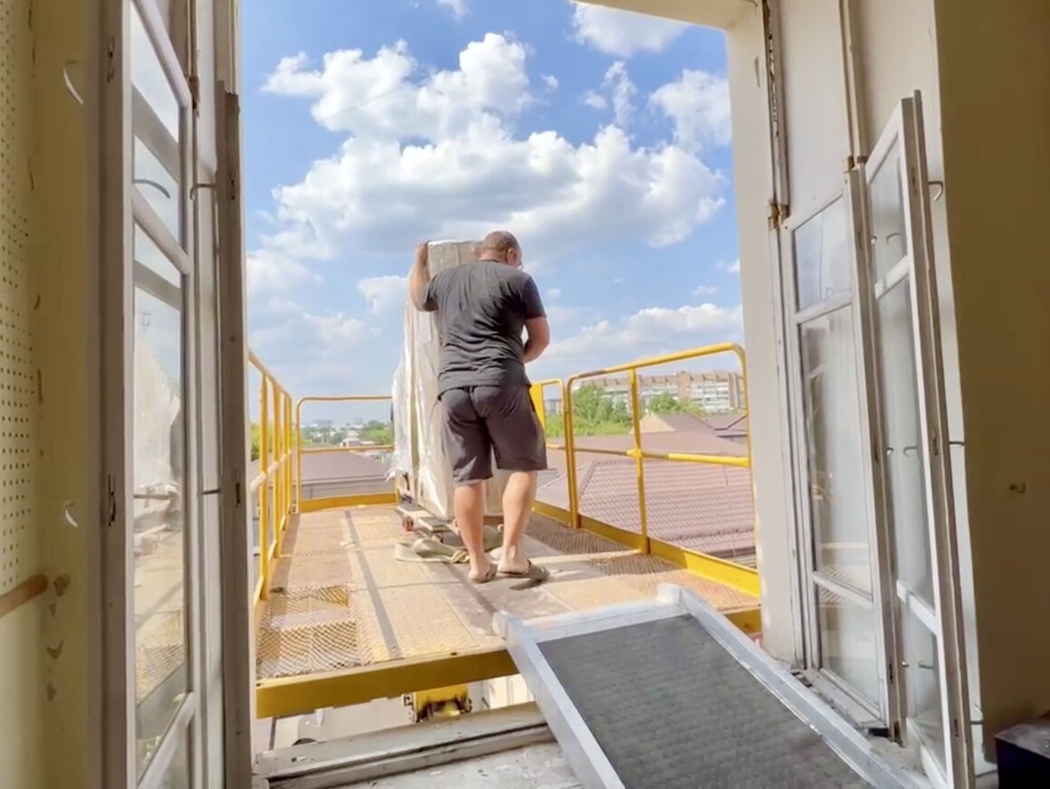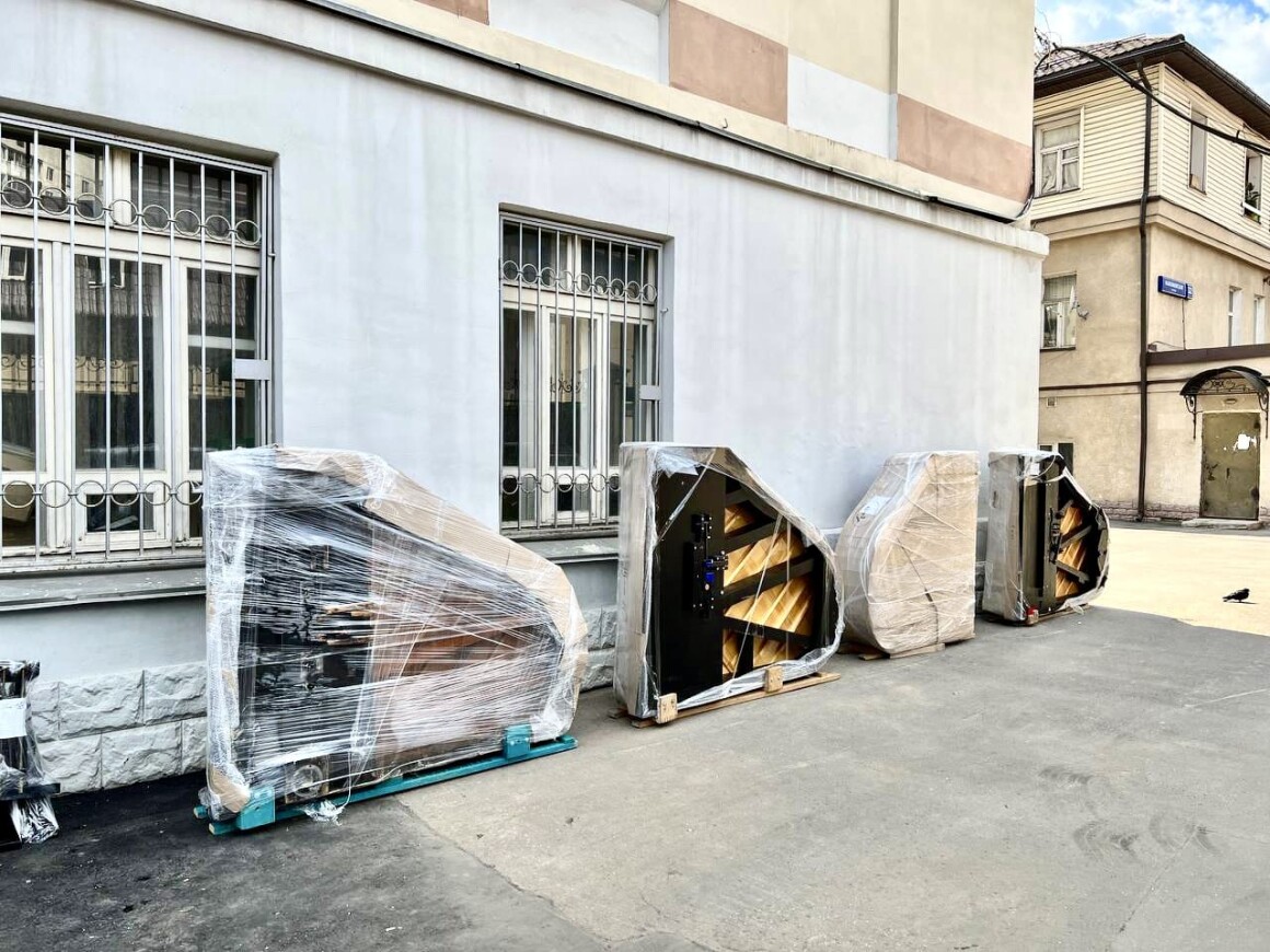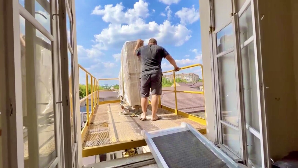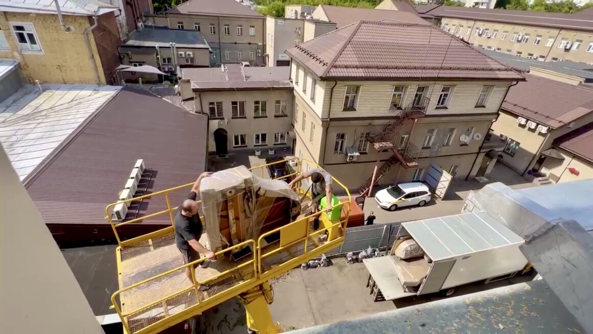 Приняли решение демонтировать окна в нескольких помещениях и спускать рояли с помощью автопогрузчика.